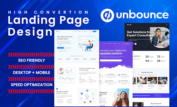 Page speed is critical for both user experience and SEO. Visitors are impatient, and slow-loading pages have high bounce rates and lower conversion rates. Unbounce is built with speed in mind. Pages published on Unbounce’s servers are optimized for fast loading times, helping to ensure visitors don’t abandon your page before it even loads.
